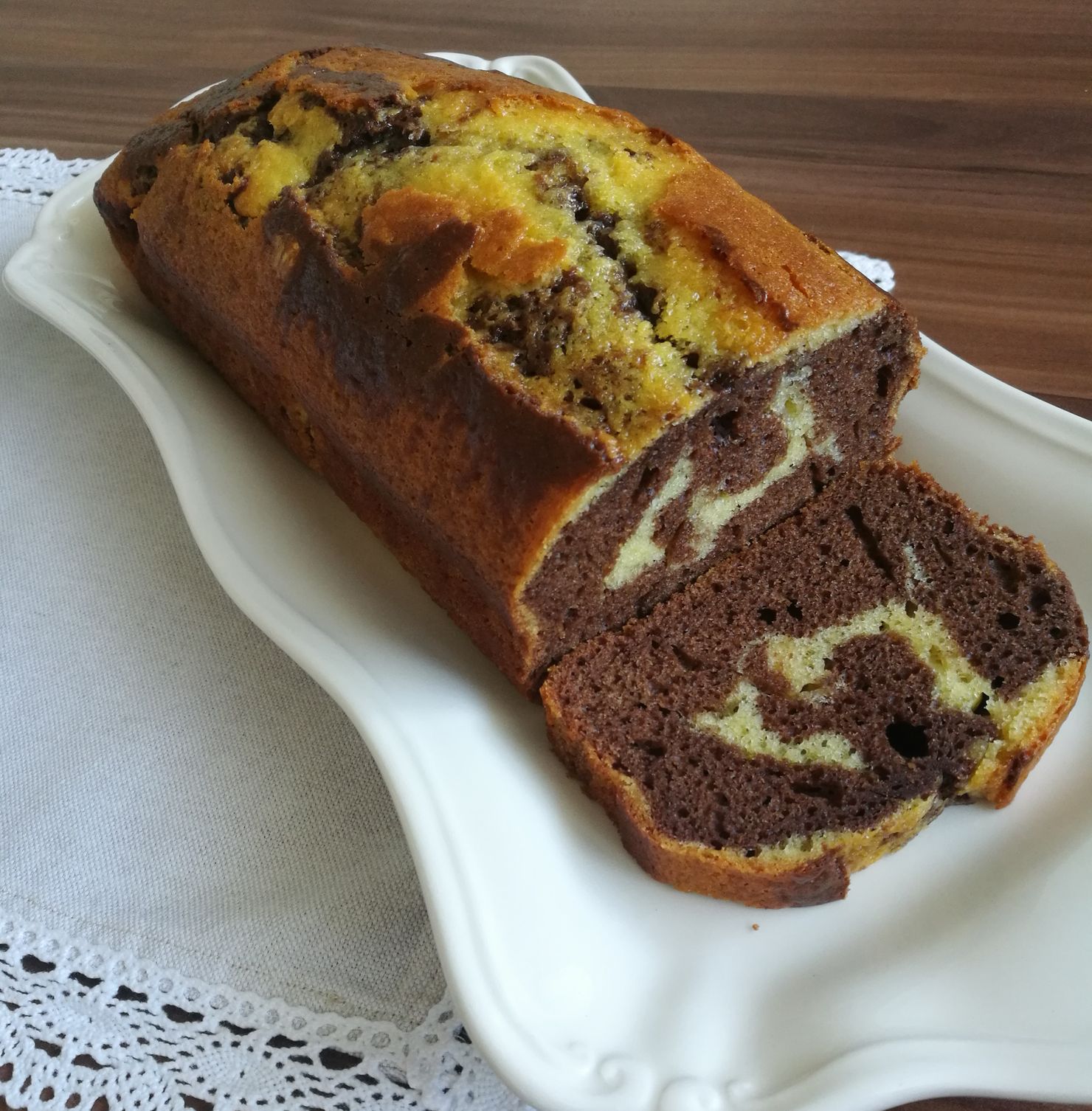 Do formy vlijeme polovinu světlého těsta, na něj nalejeme všechno tmavé těsto a nakonec vlejeme zbylé světlé těsto.